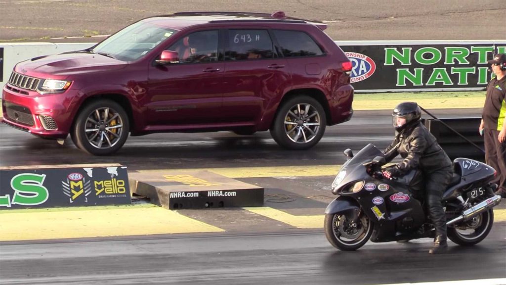 Jeep Trackhawk แข่งวิ่งทางตรงกับ Suzuki Hayabusa กับผลลัพธ์ที่จะทำให้คุณต้องอึ้ง