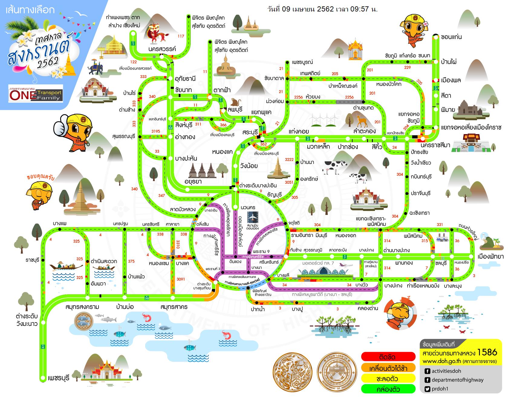 กรมทางหลวงแนะนำเส้นทางเลี่ยงในช่วงเทศกาลสงกรานต์ 2562