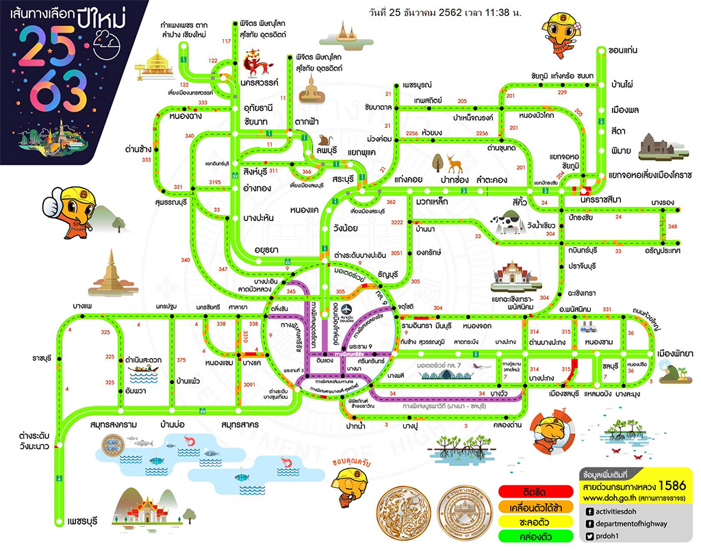 กรมทางหลวงจัดทำเส้นทางเลือกช่วงเทศกาลปีใหม่ 2563 พร้อมแสดงปริมาณจราจรแบบเรียลไทม์