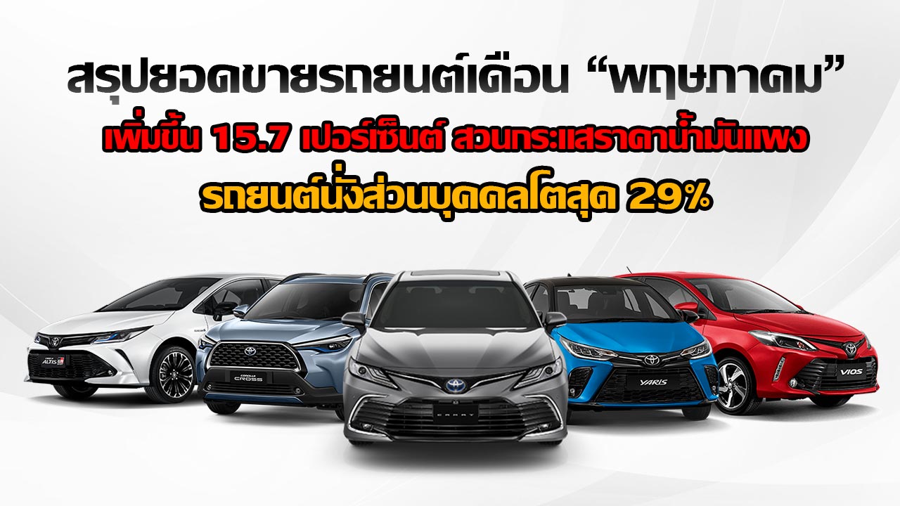 สรุปยอดขายรถยนต์เดือน”พฤษภาคม” โตขึ้น 15.7 เปอร์เซ็นต์ สวนกระแส น้ำมันแพง รถยนต์นั่งโตสุด 29%