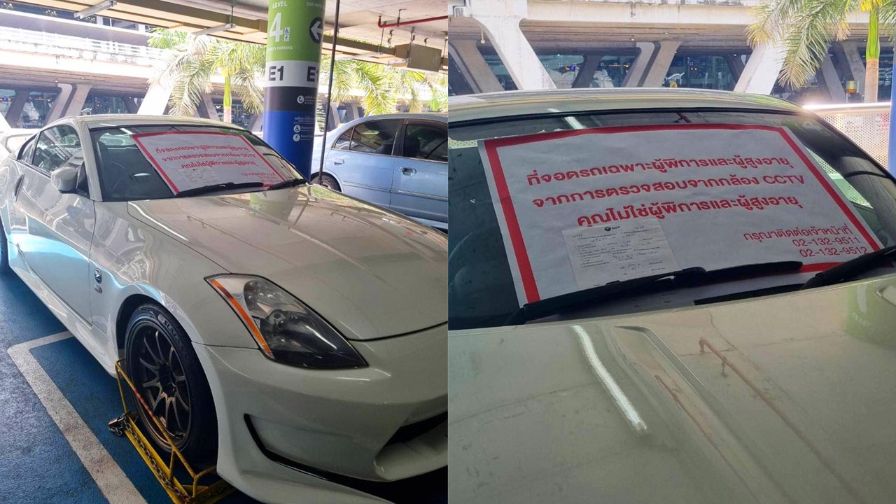 Nissan 350Z เนียนจอดรถในช่องจอด “ผู้พิการ” ในสนามบินสุวรรณภูมิ แต่สุดท้าย…เกมส์