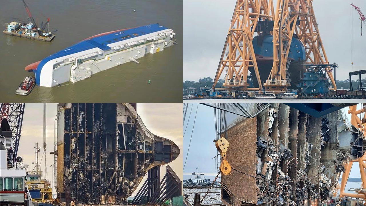 ชมภาพภาระกิจกู้เรือขนส่งรถยนต์ Golden Ray อัปปาง ที่มีซากรถยนต์ 4,300 คันติดอยู่ข้างใน !!