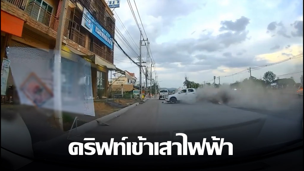 ชมคลิปรถกระบะซิ่ง กดมาเต็มข้อพร้อมโชว์ควันดำเท่ๆ สุดท้ายดริฟท์เข้าเสาไฟฟ้า