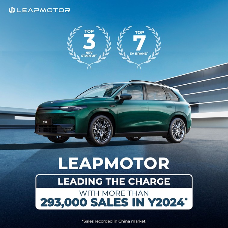 Leapmotor ติดอันดับTOP 3 รถพลังงานใหม่กลุ่ม Startup ในประเทศจีนและรั้งอันดับที่ 7 ยอดขายรวม 293,724 คัน เติบโตขึ้น 100% เมื่อเทียบกับปี 2023