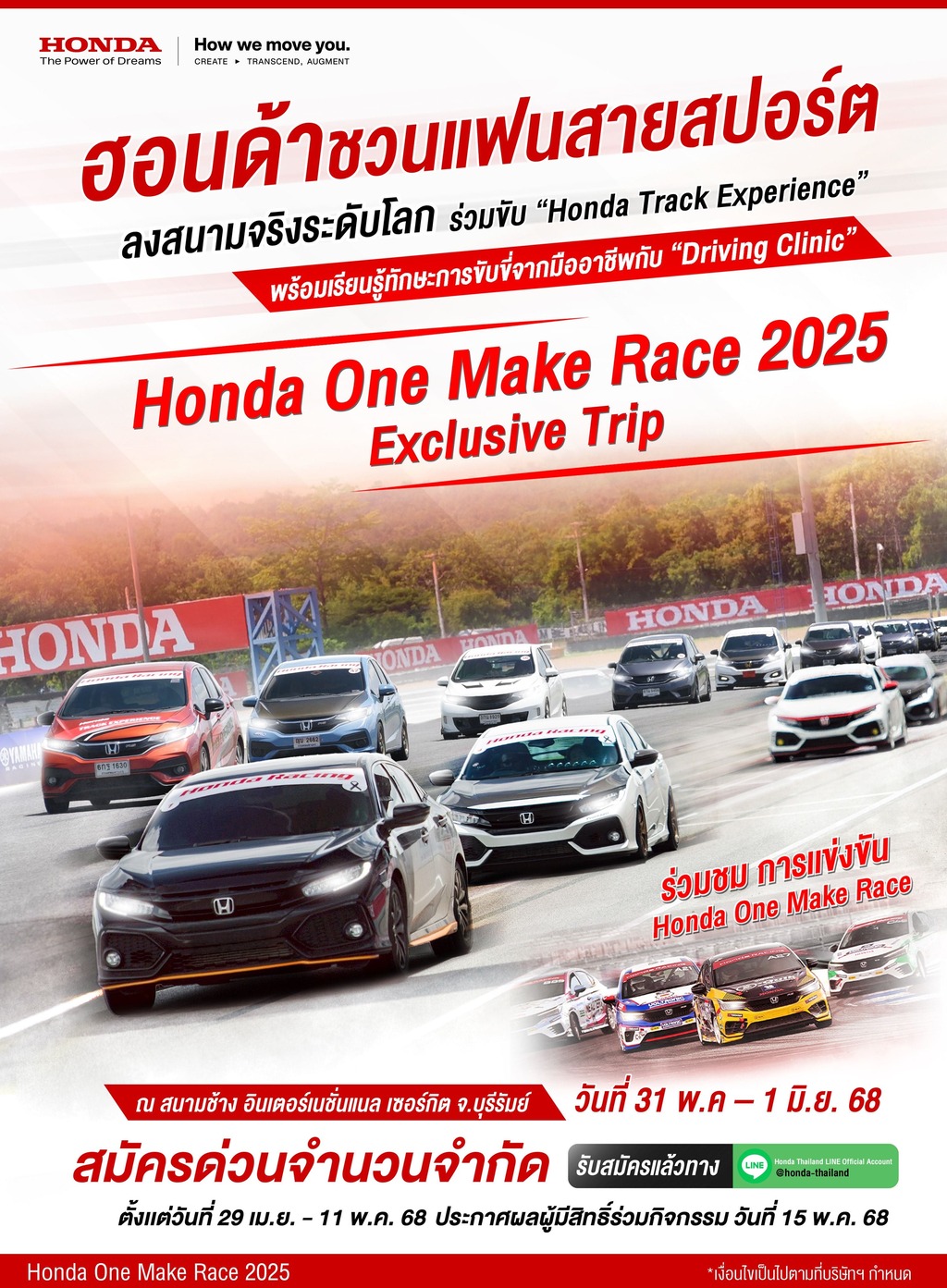 ฮอนด้าชวนแฟนสายสปอร์ตออกทริป “Honda One Make Race 2025 Exclusive Trip” ลงสนามจริงระดับโลกกับ “Honda Track Experience”
