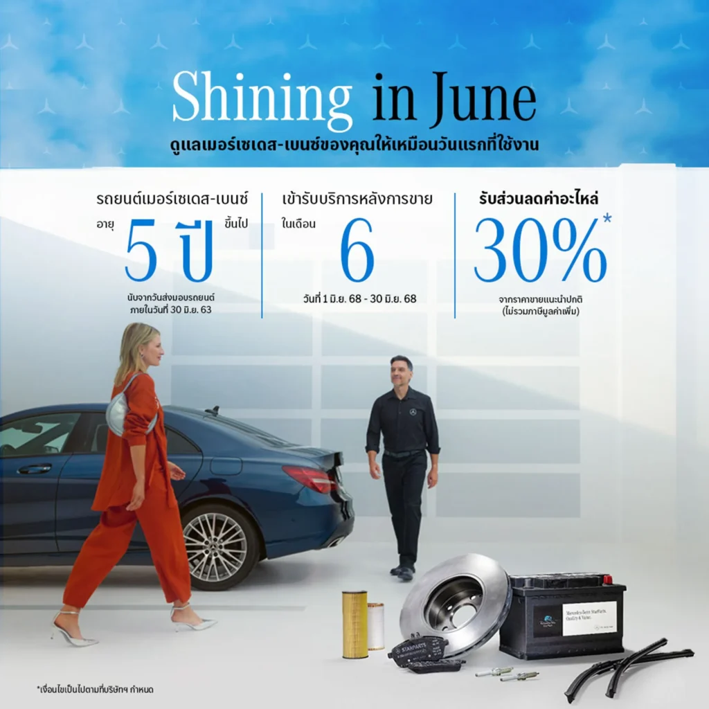 เมอร์เซเดส-เบนซ์ มอบแคมเปญ “Shining in June” ส่วนลดค่าอะไหล่ 30% สำหรับรถยนต์อายุ 5 ปีขึ้นไป*