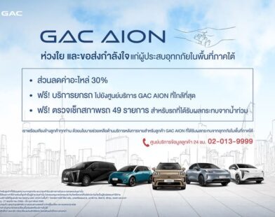 GAC AION Thailand ส่งความห่วงใยผู้ประสบอุทกภัยภาคใต้ มอบส่วนลดค่าอะไหล่และบริการตรวจเช็กฟรี สำหรับรถยนต์ที่ได้รับผลกระทบจากเหตุอุทกภัย