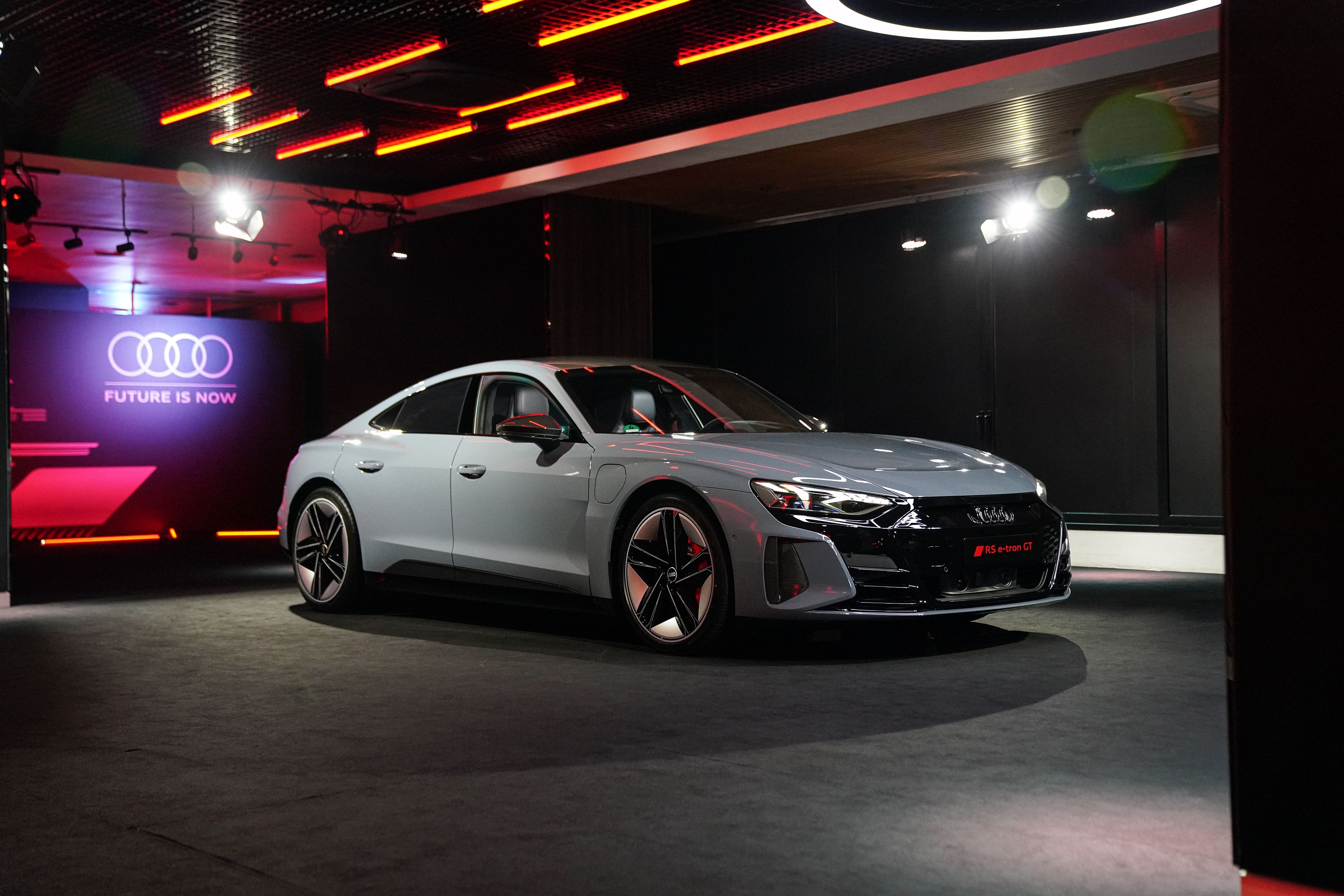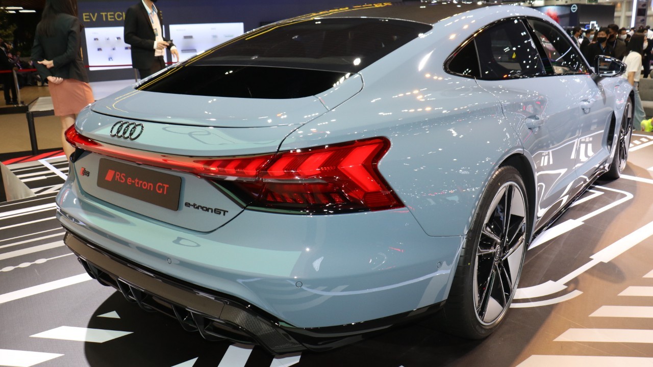 สำหรับตัวท็อป “Audi RS e-tron GT quattro” เป็นยนตรกรรมพลังงานไฟฟ้าที่มีความโดดเด่นด้านดีไซน์ โดยมีความสมบูรณ์แบบ สวยงาม โฉบเฉี่ยว สปอร์ตทั้งภายนอกและภายใน ด้วยอุปกรณ์อำนวยความสะดวกที่ผสมผสานดีไซน์ ฟังก์ชั่น และความสปอร์ตได้อย่างลงตัว มาพร้อมระบบควบคุมการขับเคลื่อนมอเตอร์ไฟฟ้า 2 ตำแหน่ง ให้พละกำลังสูงถึง 646 แรงม้า ใน Boost Mode แรงบิดสูงสุด 830 นิวตันเมตร อัตราเร่ง 0-100 กม./ชม. เพียง 3.3 วินาที ใน Boost Mode ความเร็วสูงสุด 250 กม./ชม. สามารถขับได้ไกลถึง 504 กิโลเมตรต่อการชาร์จหนึ่งครั้ง (ทดสอบตามมาตรฐาน NEDC) นอกจากนี้ Audi RS e-tron GT quattro ยังติดตั้งพวงมาลัยไฟฟ้าแบบ All-wheel steering เพิ่มความคล่องตัวในการขับขี่ในเมืองและการทรงตัวขณะเข้าโค้งด้วยความเร็ว พื้นที่เก็บสัมภาระกว้างขวาง โดยด้านหน้าความจุ 85 ลิตร ด้านหลัง 350 ลิตร ล้อ 21 นิ้ว ลายพิเศษ ดิสก์เบรกหน้า-หลังเคลือบทังสเตนคาร์ไบด์ (Tungsten Carbide) พร้อมคาลิเปอร์เบรกสีแดง ชุดตกแต่งภายนอกแบบ Black package พร้อมตกแต่งกระจกมองข้างด้วยสีดำ และตกแต่งกระจังหน้าด้วยสี Glossy black