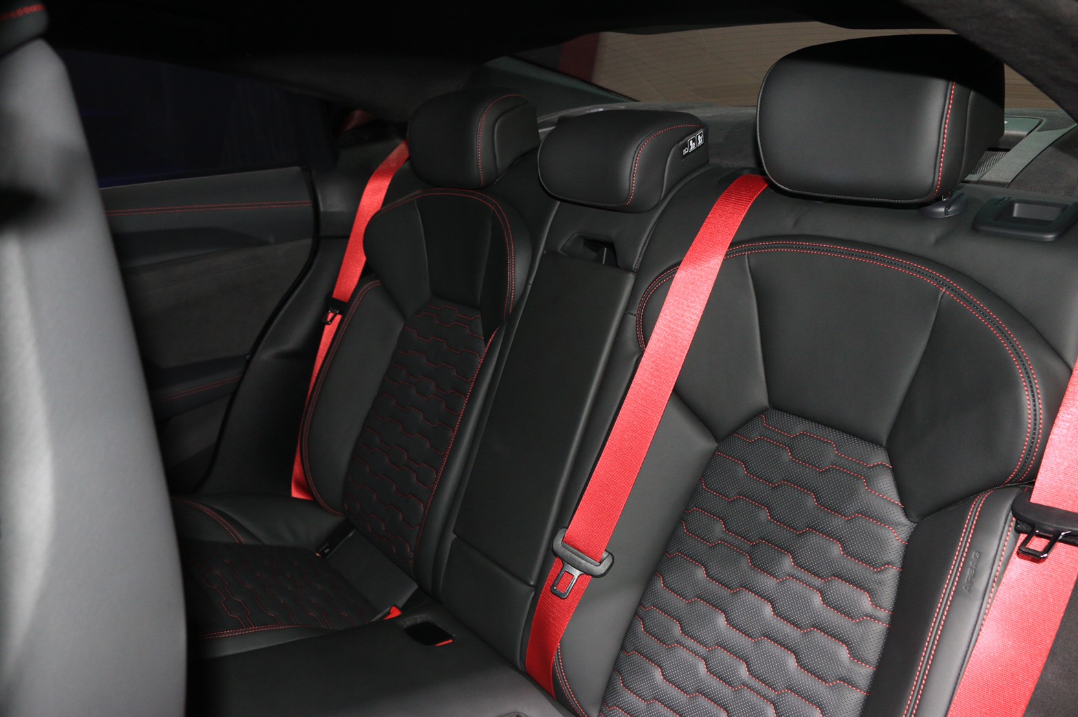 Audi RS e-tron GT quattro ได้รับการออกแบบภายในตามแบบฉบับของ Audi Sport ที่มีการจัดวางตำแหน่งที่นั่งภายในห้องโดยสารอันชาญฉลาด ส่งผลให้พื้นที่ในห้องโดยสารกว้างขวางและนั่งได้อย่างสะดวกสบาย ห้องโดยสารตกแต่งด้วยลาย Matte Carbon Twill ด้านข้างของคอนโซลตรงกลางหุ้มหนัง Alcantara สีดำตกแต่งด้วยด้ายสีแดง ทำให้ดูสวยดุดัน และสปอร์ตเพิ่มขึ้น ที่วางแขนข้างประตูหุ้มหนัง Fine Nappa ตกแต่งด้วยด้ายสีแดง เอกลักษณ์โดดเด่นแสดงให้เห็นความสปอร์ตด้วยสายเข็มขัดนิรภัยสีแดงล้วน พรมในห้องโดยสารด้านหน้าสีดำตกแต่งด้วยด้ายสีแดง เบาะนั่งคู่หน้าแบบ Sports Pro ตกแต่งแบบ Honeycomb พร้อมฟังก์ชั่นระบายอากาศ และนวดเพื่อการผ่อนคลาย สำหรับเบาะนั่งคู่หน้า พวงมาลัยไฟฟ้ามัลติฟังก์ชั่นทรงสปอร์ตท้ายตัดหุ้มหนัง Alcantara พร้อมสัญลักษณ์ RS เพิ่มความสะดวกสบายให้ผู้ขับขี่ด้วยระบบแสดงข้อมูล Head-up display ภายในที่กว้างขวางตามแบบฉบับของ Audi Sport เต็มเปี่ยมด้วยประสิทธิภาพอันทรงพลัง และสมรรถนะอันเร้าใจ พร้อมความสะดวกสบายตอบโจทย์การใช้งานในชีวิตประจำวัน โดย The New RS e-tron GT quattro เปิดตัวในราคาสุดเร้าใจเพียง 9,490,000 บาท