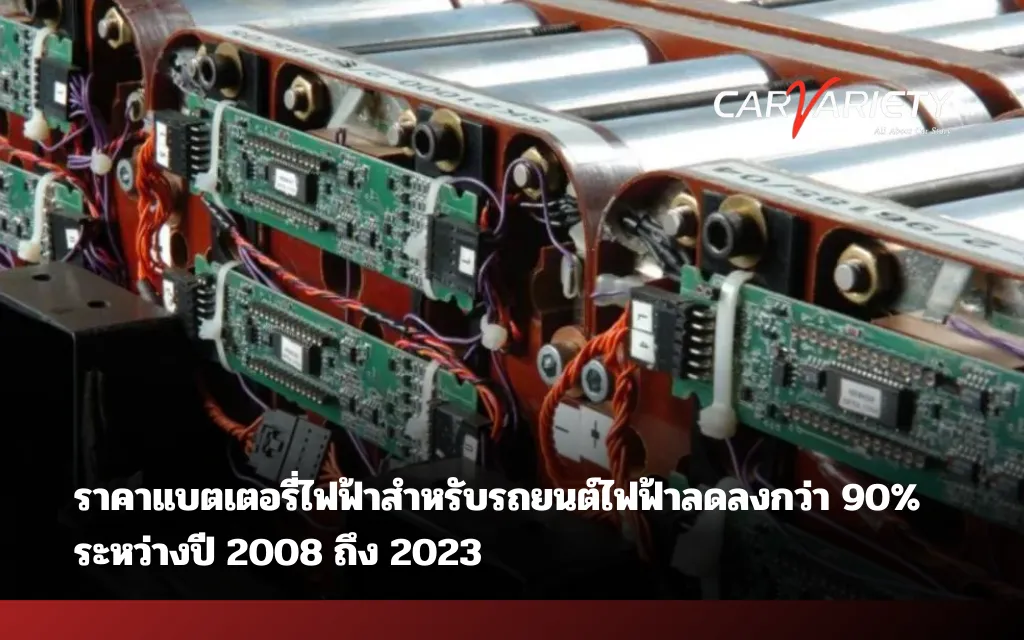 ราคาแบตเตอรี่ไฟฟ้าสำหรับรถยนต์ไฟฟ้าลดลงกว่า 90% ระหว่างปี 2008 ถึง 2023