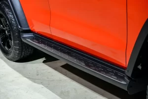 ภานนอกยังเพิ่มความเท่ด้วยกันชนดีไซน์ออฟโรดร่วมสมัย บังโคลนขนาดใหญ่ และบันไดข้าง รวมถึงประตูท้ายแบบ horizontal ไฟท้าย LED แนวตั้ง ยางอะไหล่ติดตั้งบนประตูท้าย พร้อมกล้องมองหลังที่ซ่อนอยู่บนฝาครอบยางอะไหล่ หลังคาซันรูฟแบบเปิด – ปิดด้วยระบบไฟฟ้า และล้ออัลลอยขนาด 17 นิ้ว สีดำ หุ้มด้วยยาง A/T ขนาด 265/65 R17