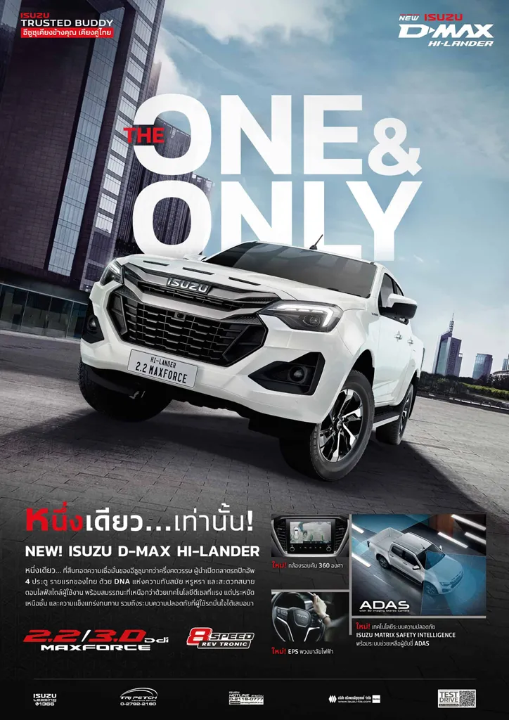 อีซูซุเปิดตัว Isuzu D-Max Hi-Lander CAB4 (Minorchange 2025) ปิกอัพ 4 ประตูขับสองระดับพรีเมียมรุ่นยอดนิยม มาพร้อมการดีไซน์ใหม่ทั้งภายนอกและภายใน พร้อมอัปเกรดเทคโนโลยีความปลอดภัยขั้นสูง ADAS ครบชุด ขับเคลื่อนด้วยขุมพลังดีเซล 2.2 MAXFORCE และ 3.0 VGS Turbo ตอบโจทย์ทั้งสมรรถนะและความประหยัด