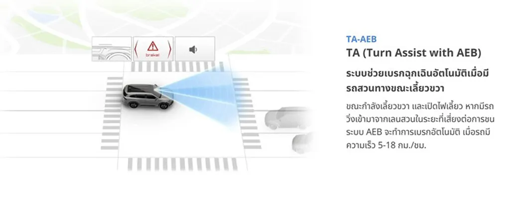 Turn Assist with AEB สำหรับเบรกฉุกเฉินขณะมีรถสวน