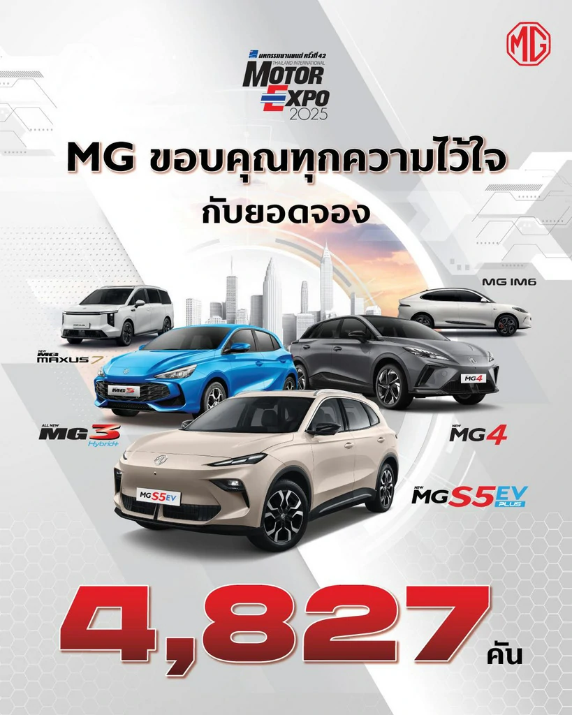 ครั้งนี้ โตขึ้นกว่าปีที่ผ่านมาถึง 46% โดยในรุ่นยอดนิยมอย่าง NEW MG S5 EV PLUS ทำยอดจองได้ 1,737 คัน NEW MG 4 ELECTRIC ทำยอดจองได้ 1,568 คัน ส่วนในกลุ่มพรีเมียมได้แก่ MG IM6 MG MAXUS9 MG MAXUS7 และ MG CYBERSTER มียอดจองรวมที่ 950 คัน กลุ่มรถยนต์สันดาปและพลังงานทางเลือก ได้แก่ ALL NEW MG3 HYBRID+ MG5 MG VS HEV MG HS และ MG ZS ยอดรวมอยู่ที่ 440 คัน ซึ่งนอกจากยอดจองที่โตขึ้นแล้ว ลูกค้ายังให้ความสนใจจองคิวทดลองขับสูงสุด และหลังจากทดลองขับลูกค้ากว่า 90% ตัดสินใจจองรถในทันที สะท้อนให้เห็นถึงความเชื่อมั่นที่ลูกค้ามีต่อคุณภาพ นวัตกรรม และความคุ้มค่าของรถยนต์ เอ็มจี อย่างแท้จริง”