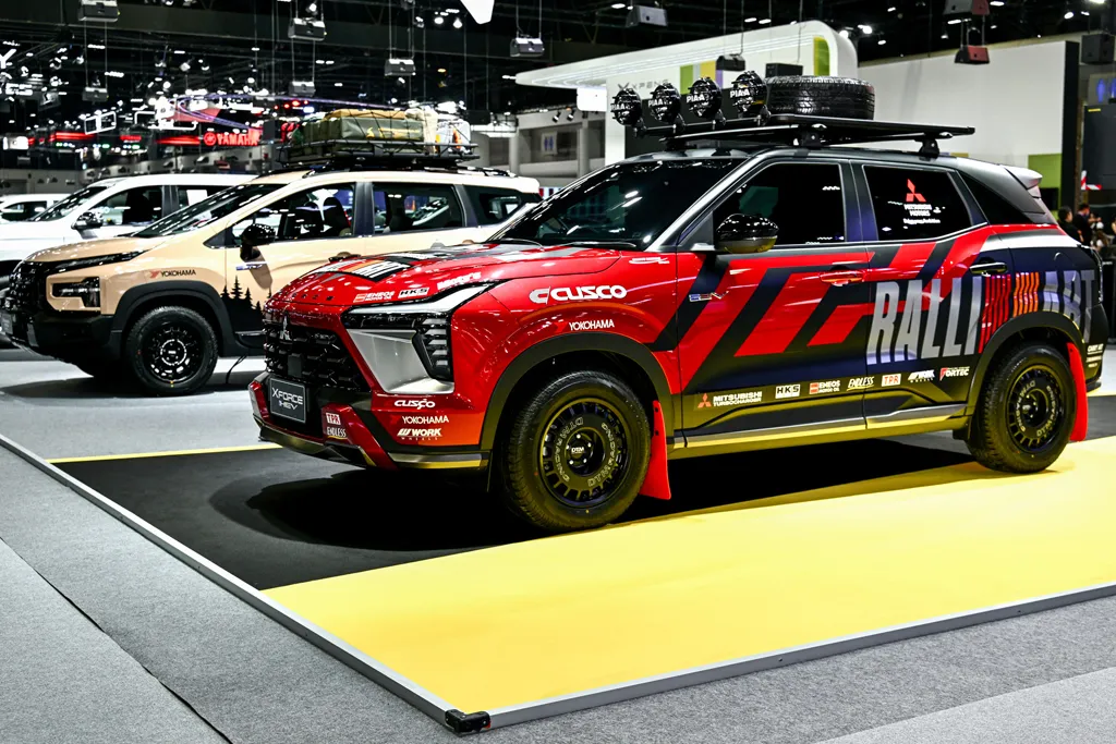 เชิงพาณิชย์ มิตซูบิชิ เอ็กซ์แพนเดอร์ ครอส เอชอีวี ใหม่ ตกแต่งแนวผจญภัย เอาใจสายแคมป์ปิ้ง ติดตั้งฟังก์ชันอเนกประสงค์สำหรับกิจกรรมกลางแจ้ง และอีกหนึ่งไฮไลต์ ออล-นิว มิตซูบิชิ เอ็กซ์ฟอร์ส เอชอีวี ในเวอร์ชันตกแต่งพิเศษสไตล์รถแข่ง AXCR ถ่ายทอดจิตวิญญาณแรลลี่ เพื่อฉลองชัยชนะของทีมมิตซูบิชิ แรลลี่อาร์ต ที่คว้าแชมป์โอเวอร์ออลมาครองได้ในปีนี้ ให้ทุกท่านได้สัมผัสภายในงานอย่างใกล้ชิด
