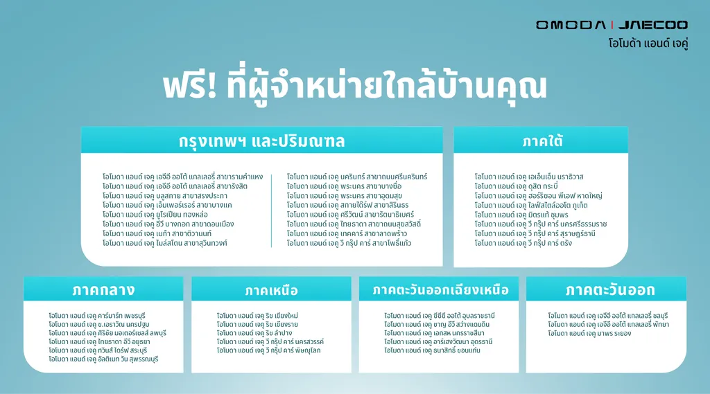 ดูข้อมูลเพิ่มเติมได้ที่ www.omodajaecoo.co.th/th หรือสอบถามข้อมูลเพิ่มเติมได้ที่ศูนย์บริการลูกค้า