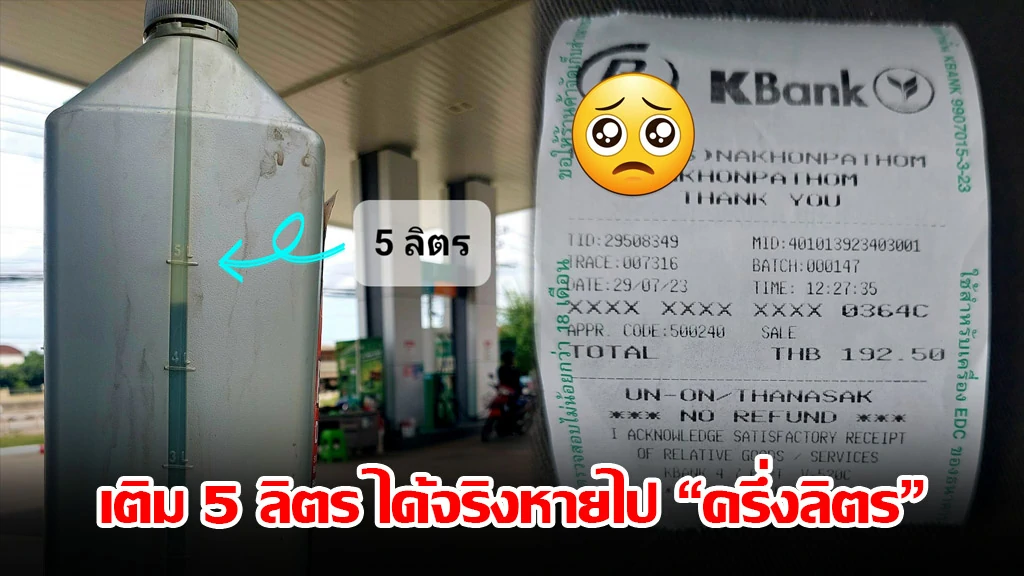 เอาอีกแล้ว หนุ่มเอาแกลอนไปเติมน้ำมัน 5 ลิตร แต่ได้จริงหายไปครึ่งลิตร