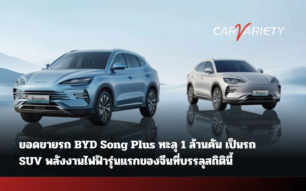 ยอดขายรถ BYD Song Plus ทะลุ 1 ล้านคัน เป็นรถ SUV พลังงานไฟฟ้ารุ่นแรกของจีนที่บรรลุสถิตินี้