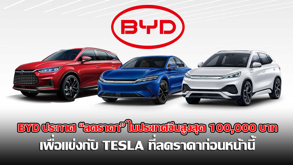 BYD ประกาศ “ลดราคา” รถยนต์ในประเทศจีนสูงสุด 100,000 บาท เพื่อแข่งกับ Tesla ที่ลดราคาก่อนหน้านี้