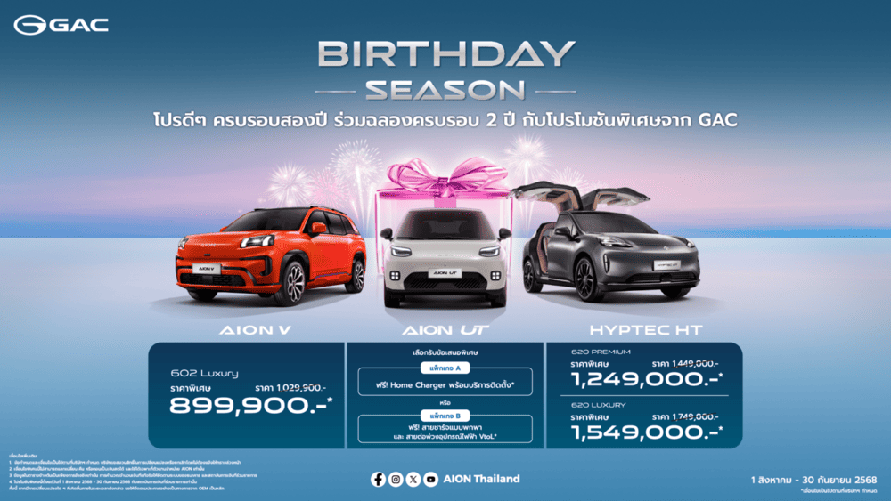 GAC Thailand ขยายเวลาแห่งความสุขในแคมเปญ ‘GAC Birthday Season’ ต่อเนื่องถึง 31 ตุลาคม 2568 มอบส่วนลดสูงสุด 200,000 บาท