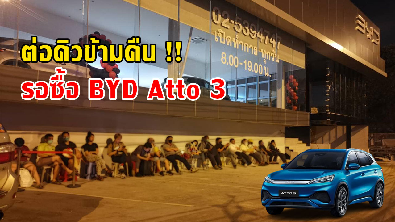 BYD สร้างปรากฏการณ์ ลูกค้าแห่จองคิวซื้อ Atto 3 หน้าโชว์รูม ตั้งแต่เที่ยงคืน !!