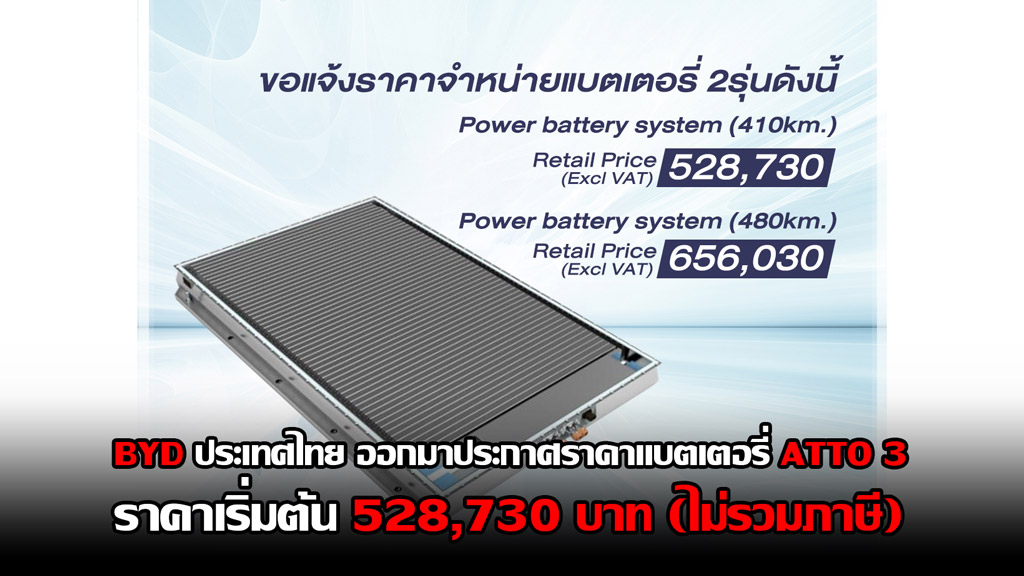 BYD ประเทศไทย ออกมาประกาศราคาแบตเตอรี่ Atto 3 เริ่มต้นที่ 528,730 บาท