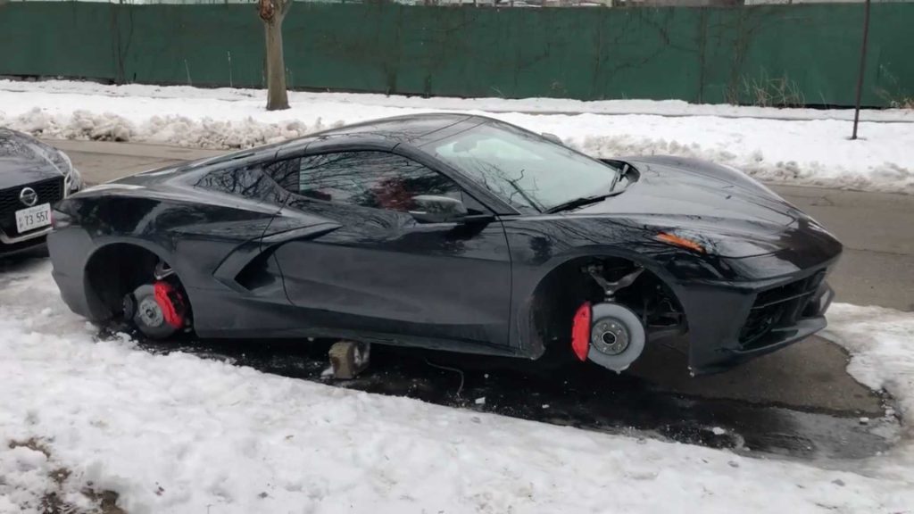 ทำกันได้ เมื่อ Corvette C8 ถูกโจรใจเหี้ยมขโมยล้อ เจ็บปวดที่เหลือแค่น็อตไว้ให้ดูต่างหน้า