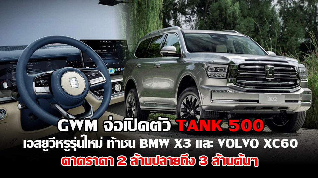 GWM จ่อเปิดตัว Tank 500 ใน Motorshow ท้าชนBMW X3 และ Volvo XC60 คาดราคา 2 ล้านปลาย
