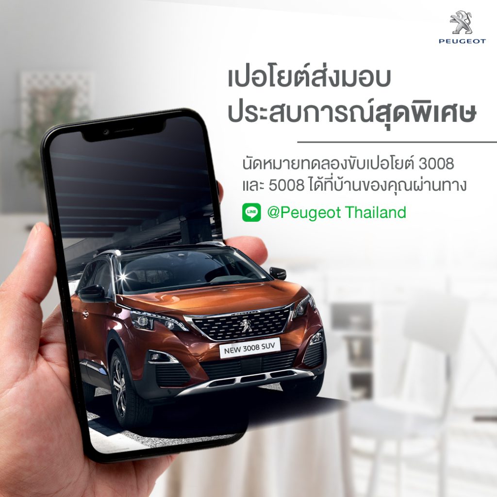 PEUGEOT จับมือ LINE เพิ่มช่องทางจองรถผู้บริหาร ไมล์น้อย พร้อมบริการส่งรถทดลองขับฟรีถึงบ้าน
