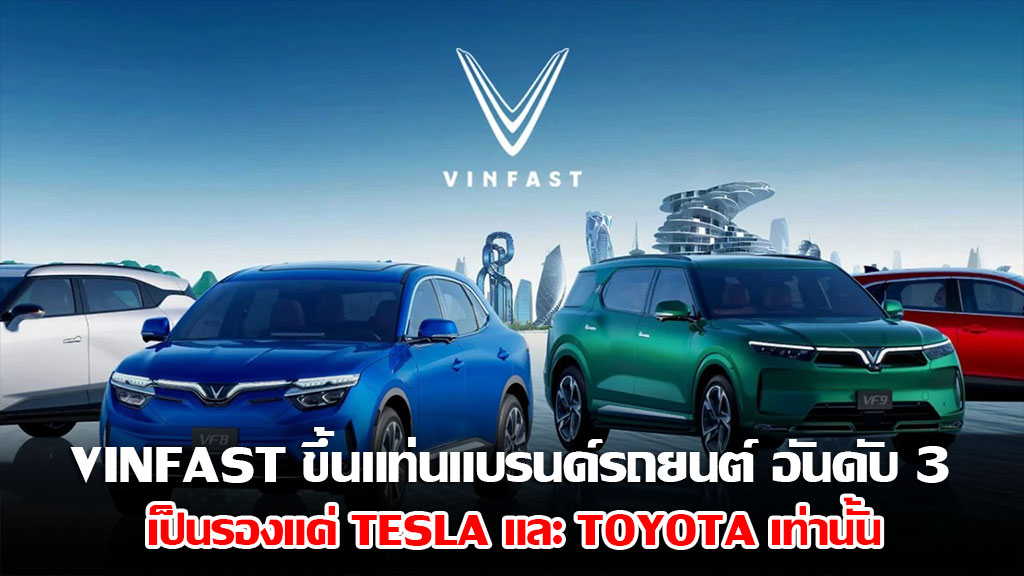 VinFast ขึ้นแท่นแบรนด์รถยนต์อันดับ 3 ของโลก เป็นรองเพียงแค่ Tesla และ Toyota เท่านั้น